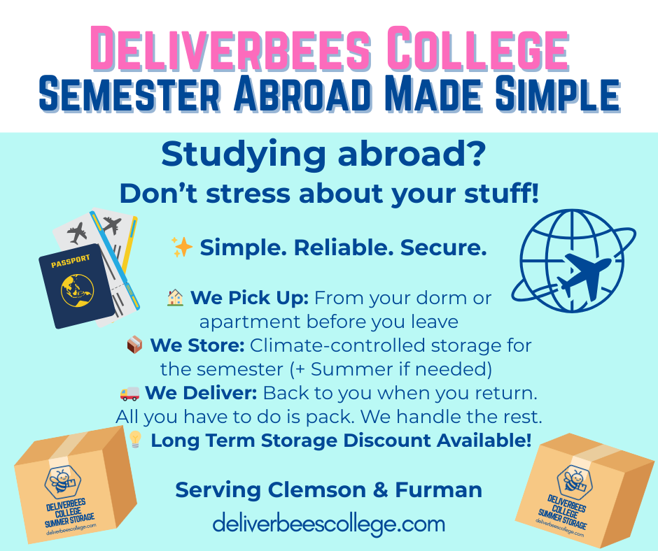 Semester Abroad Storage – Now Open for Clemson & Furman Students!