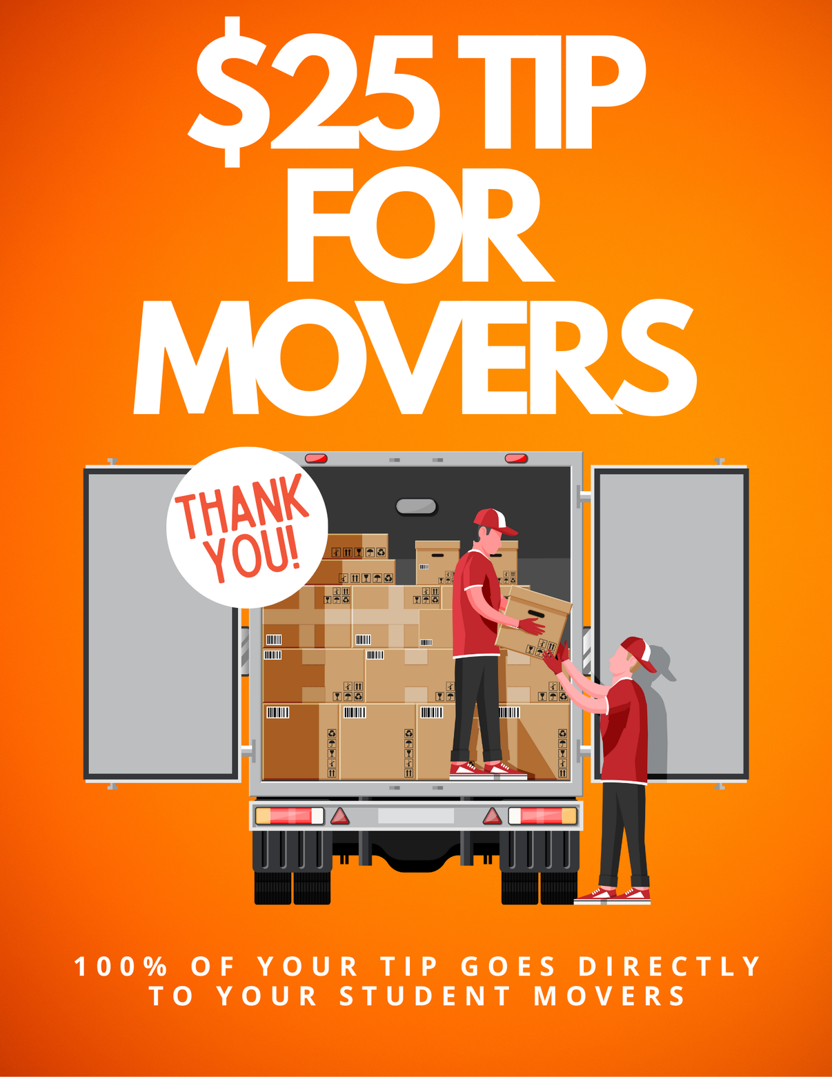 Optional tip for movers. Add quantity until you reach your desired tip amount. 100% of your tip goes directly to your student movers. Thank you!